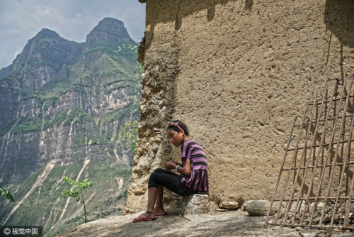 阿土勒爾村過去建有連接山下的索道,不過開動一次索道需要幾百度電,村里人根本用不起,后來索道就拆除了。阿皮幾體告訴記者,如果單從安全問題考慮,在現(xiàn)有的崖壁道路上用鋼筋焊接的梯子代替藤梯,再添加防護(hù)欄,怎么也得耗資幾百萬。圖片來源:視覺中國