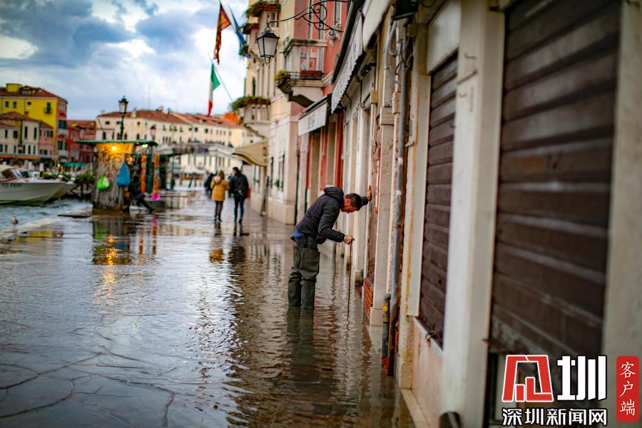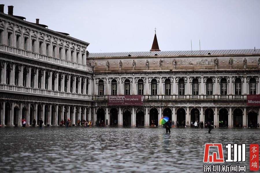 當(dāng)?shù)貢r間17日下午1點15分,威尼斯水位達(dá)到1.5米,全市近7成城區(qū)被水淹。為保障安全,市中心的圣馬可廣場臨時關(guān)閉3小時,水上公交也在水位高漲時停運。