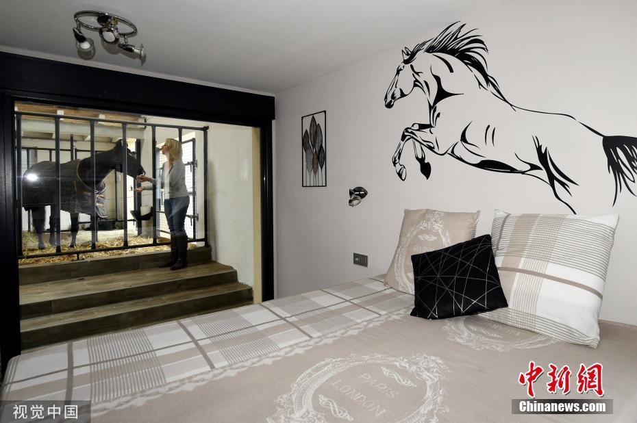 當(dāng)?shù)貢r(shí)間2019年11月25日,法國(guó)桑圖瓦地區(qū)弗賴(lài)斯內(nèi),一家特別的“酒店”開(kāi)張,入住者可以透過(guò)玻璃清楚的看到馬廄里的馬,還可以跟馬親密接觸。圖片來(lái)源:視覺(jué)中國(guó)