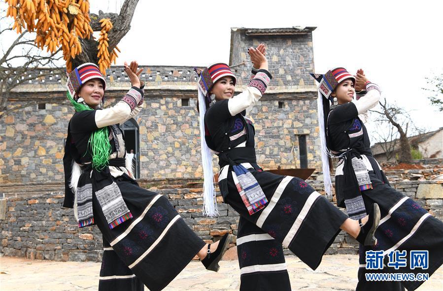 11月28日,大糯黑村村民在進行彝族大三弦舞表演。新華社記者王全超攝