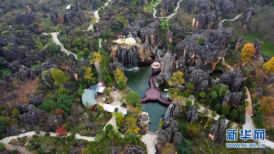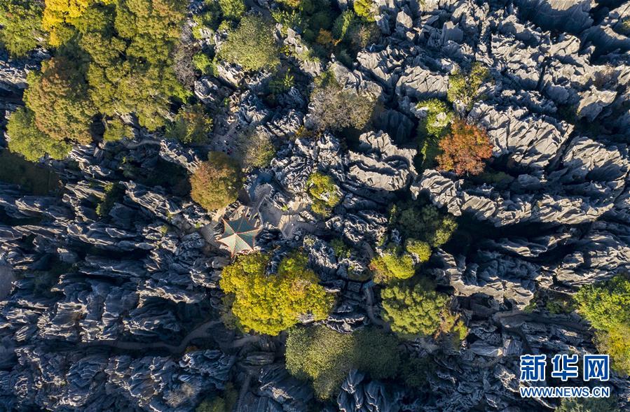 11月28日,空中俯瞰石林景區(qū)(無人機拍攝)。新華社記者江文耀攝