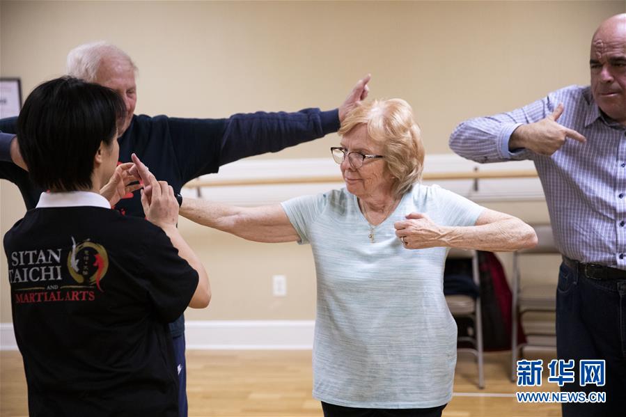 陳思坦的夫人林旭在位于美國紐約長島的一所社區(qū)老年活動中心指導(dǎo)老人練習(xí)太極(11月20日攝)。這里是陳思坦夫婦開設(shè)的一個公益教學(xué)項目。11月的紐約已進(jìn)入初冬,位于美國紐約長島的思坦太極武術(shù)中心依然一片紅火景象,學(xué)員們從5歲的孩童到80多歲的老人,操練著太極拳、太極劍、長拳等武術(shù)招式。這里的主人陳思坦、林旭夫婦,也從早忙到晚,精心指導(dǎo)每一位學(xué)員的一招一式。6歲習(xí)武,22歲成為中國全國冠軍,26歲獲得首個世界冠軍……直到30歲退役,陳思坦在運動員生涯中曾獲得過32次國內(nèi)外各類武術(shù)大賽冠軍。36歲那年,懷著以太極拳和中國武術(shù)為媒介向世界推廣中國文化的夢想,陳思坦到美國紐約尋找新的舞臺。經(jīng)過十多年的艱苦打拼,陳思坦夫婦目前在紐約長島、法拉盛和曼哈頓都開設(shè)了長期的課程,思坦太極注冊在編的各個年齡段的學(xué)員近千人,有些“高徒”現(xiàn)在自己也開班授課,將太極推向更多地方。陳思坦夫婦現(xiàn)在思考更多的是如何將太極和武術(shù)推廣給更多的美國人,并讓他們理解其中蘊含的平衡、和諧的中國文化理念。他們創(chuàng)辦了紐約太極健身氣功活動日,在各類學(xué)校和社區(qū)開設(shè)太極或者武術(shù)課程,并利用美國的亞太裔文化月和多元文化節(jié)舉行武術(shù)和太極表演和體驗課程,讓更多美國人親眼看到、親身體會中國武術(shù)的魅力。從2011年起,他們還參與創(chuàng)辦了紐約太極大賽,如今已舉行九屆,吸引了美國、加拿大和中國國內(nèi)的隊伍參賽,影響力逐漸擴(kuò)大。新華社記者王迎攝