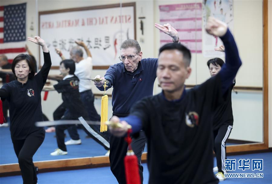 陳思坦在位于美國(guó)紐約長(zhǎng)島的思坦太極武術(shù)中心帶學(xué)員練習(xí)太極劍(11月20日攝)。11月的紐約已進(jìn)入初冬,位于美國(guó)紐約長(zhǎng)島的思坦太極武術(shù)中心依然一片紅火景象,學(xué)員們從5歲的孩童到80多歲的老人,操練著太極拳、太極劍、長(zhǎng)拳等武術(shù)招式。這里的主人陳思坦、林旭夫婦,也從早忙到晚,精心指導(dǎo)每一位學(xué)員的一招一式。6歲習(xí)武,22歲成為中國(guó)全國(guó)冠軍,26歲獲得首個(gè)世界冠軍……直到30歲退役,陳思坦在運(yùn)動(dòng)員生涯中曾獲得過32次國(guó)內(nèi)外各類武術(shù)大賽冠軍。36歲那年,懷著以太極拳和中國(guó)武術(shù)為媒介向世界推廣中國(guó)文化的夢(mèng)想,陳思坦到美國(guó)紐約尋找新的舞臺(tái)。經(jīng)過十多年的艱苦打拼,陳思坦夫婦目前在紐約長(zhǎng)島、法拉盛和曼哈頓都開設(shè)了長(zhǎng)期的課程,思坦太極注冊(cè)在編的各個(gè)年齡段的學(xué)員近千人,有些“高徒”現(xiàn)在自己也開班授課,將太極推向更多地方。陳思坦夫婦現(xiàn)在思考更多的是如何將太極和武術(shù)推廣給更多的美國(guó)人,并讓他們理解其中蘊(yùn)含的平衡、和諧的中國(guó)文化理念。他們創(chuàng)辦了紐約太極健身氣功活動(dòng)日,在各類學(xué)校和社區(qū)開設(shè)太極或者武術(shù)課程,并利用美國(guó)的亞太裔文化月和多元文化節(jié)舉行武術(shù)和太極表演和體驗(yàn)課程,讓更多美國(guó)人親眼看到、親身體會(huì)中國(guó)武術(shù)的魅力。從2011年起,他們還參與創(chuàng)辦了紐約太極大賽,如今已舉行九屆,吸引了美國(guó)、加拿大和中國(guó)國(guó)內(nèi)的隊(duì)伍參賽,影響力逐漸擴(kuò)大。新華社記者王迎攝
