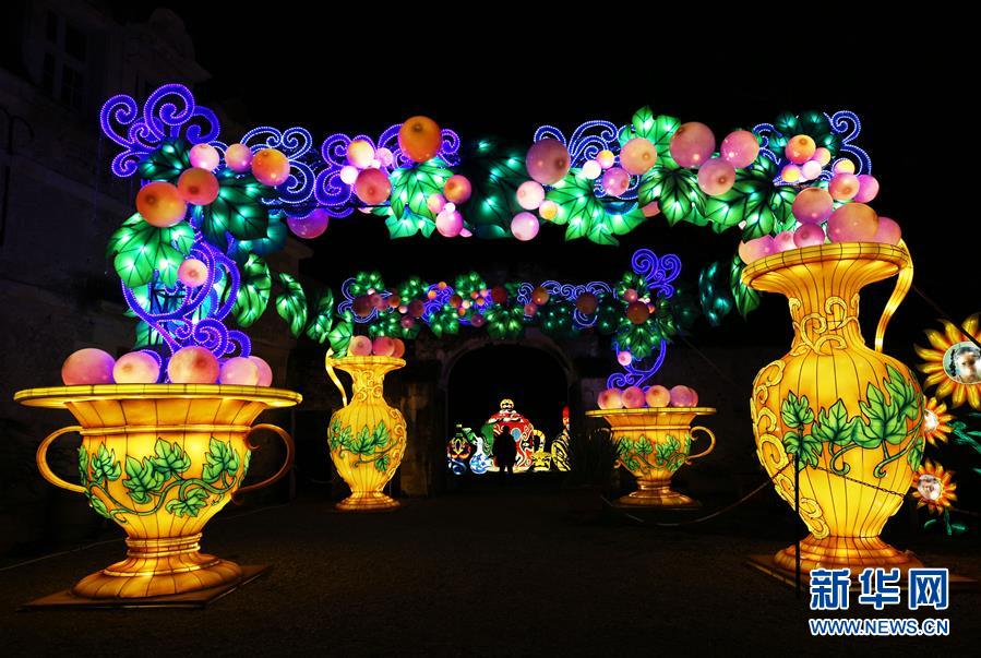 這是12月15日在法國謝爾河畔塞勒市的塞納古堡拍攝的中國彩燈。 新華社記者 高靜 攝