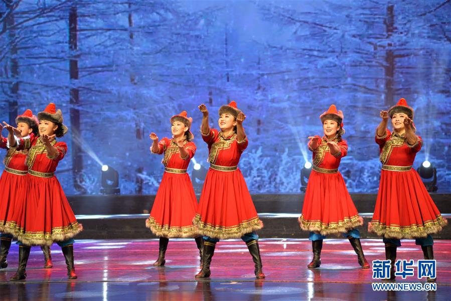 12月22日,演員在表演蒙古族布里亞特舞蹈《冬趣》。 新華社記者 徐欽 攝
