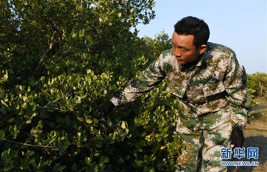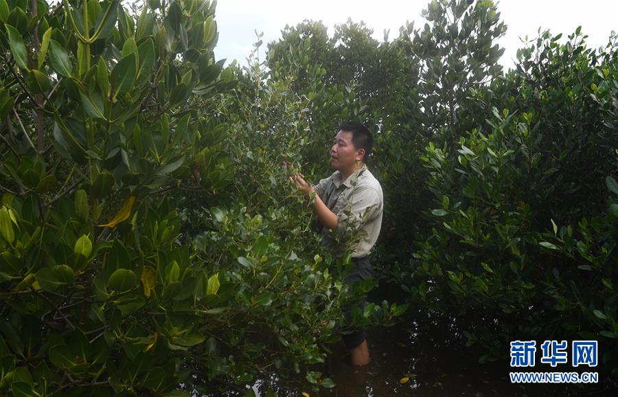 海南儋州新英灣紅樹林市級自然保護區(qū)護林員陳正平查看保護區(qū)內(nèi)的紅樹林情況(12月9日攝)。陳正平2010年開始在保護區(qū)工作,他將工作發(fā)展成愛好,廣泛參加各種培訓和業(yè)內(nèi)交流。他在工作中拍到瀕危鳥類白肩雕出現(xiàn)在海南的照片,這刷新了海南省的鳥種記錄。新華社記者楊冠宇攝