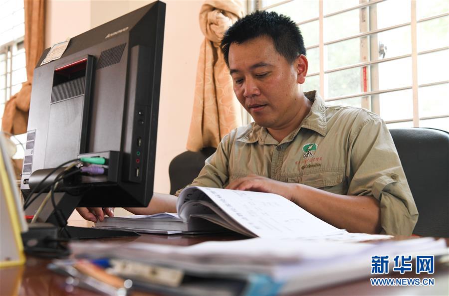 海南新盈紅樹林國家濕地公園巡護員兼監(jiān)測員羅理想(右)在濕地公園內(nèi)的辦公室里與同事探討工作(12月10日攝)。 羅理想2006年起開始參與紅樹林濕地的保護工作,近年來他參加了很多關于濕地的培訓。2016年,羅理想在工作中監(jiān)測到極危鳥種勺嘴鷸,當時有許多媒體做了報道,后來他又配合專家在濕地公園里發(fā)現(xiàn)了拉氏紅樹,“那個時候感覺自己的工作很有價值”,羅理想說。 新華社記者楊冠宇攝