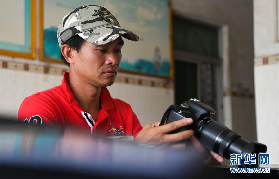 海南清瀾港省級自然保護區(qū)護林員呂詩陽在保護區(qū)內(nèi)的辦公室里查看自己拍攝的照片(12月17日攝)。 新華社記者楊冠宇攝