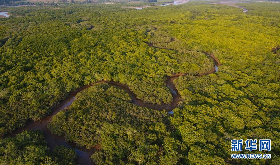 海南清瀾港省級自然保護區(qū)內(nèi)的紅樹林(12月17日無人機拍攝)。 新華社記者楊冠宇攝