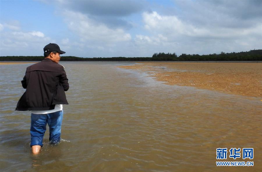 海南新盈紅樹林國家濕地公園巡護員兼監(jiān)測員羅理想在濕地公園內(nèi)的灘涂上做監(jiān)測(11月27日攝)。 羅理想2006年起開始參與紅樹林濕地的保護工作,近年來他參加了很多關于濕地的培訓。2016年,羅理想在工作中監(jiān)測到極危鳥種勺嘴鷸,當時有許多媒體做了報道,后來他又配合專家在濕地公園里發(fā)現(xiàn)了拉氏紅樹,“那個時候感覺自己的工作很有價值”,羅理想說。 新華社發(fā)