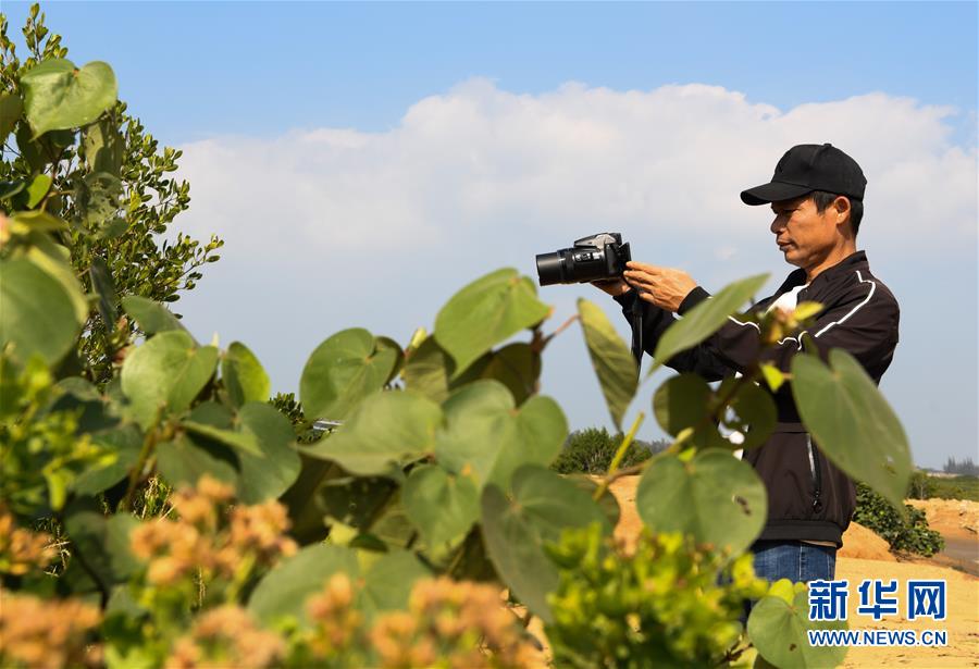 海南新盈紅樹林國家濕地公園巡護員兼監(jiān)測員羅理想在濕地公園內(nèi)拍攝紅樹林(12月11日攝)。 羅理想2006年起開始參與紅樹林濕地的保護工作,近年來他參加了很多關于濕地的培訓。2016年,羅理想在工作中監(jiān)測到極危鳥種勺嘴鷸,當時有許多媒體做了報道,后來他又配合專家在濕地公園里發(fā)現(xiàn)了拉氏紅樹,“那個時候感覺自己的工作很有價值”,羅理想說。新華社記者楊冠宇攝