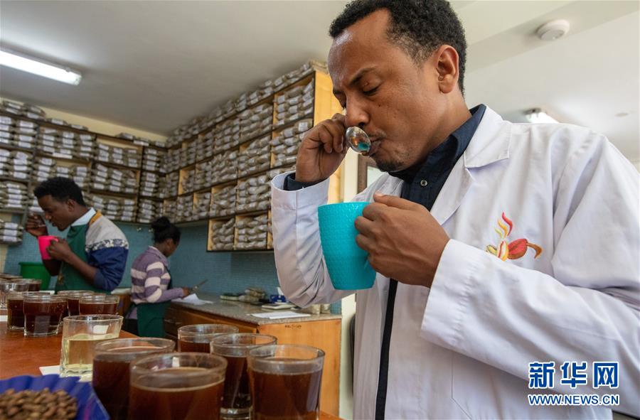 2019年10月23日,在位于埃塞俄比亞首都亞的斯亞貝巴郊外的卡辰什咖啡加工廠內(nèi),卡辰什咖啡質(zhì)量和市場(chǎng)總監(jiān)阿斯納克·卡薩在杯測(cè)室參與咖啡的杯測(cè)??ǔ绞部Х仁前H肀葋喿畲蟮目Х壬a(chǎn)商和出口商之一??ㄋ_表示,中國(guó)市場(chǎng)潛力巨大,埃塞俄比亞咖啡在中國(guó)市場(chǎng)的占有率不斷增長(zhǎng),進(jìn)博會(huì)對(duì)埃塞俄比亞咖啡出口商來(lái)說是一個(gè)很好的機(jī)會(huì)。 新華社記者 張宇 攝