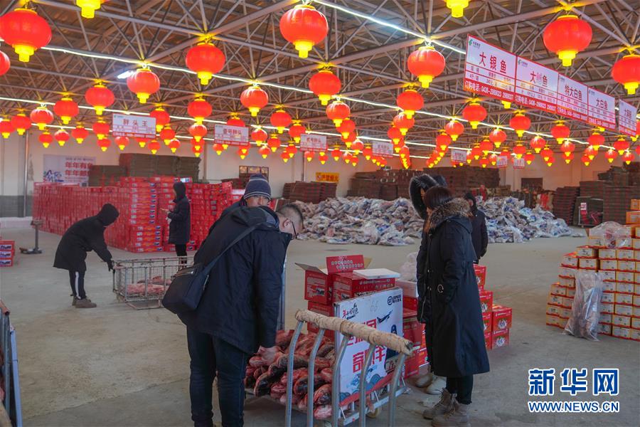 12月25日,人們?cè)谛窃坪系睦虾泳佐~市選購(gòu)剛捕撈的鮮魚。新華社記者胡超攝