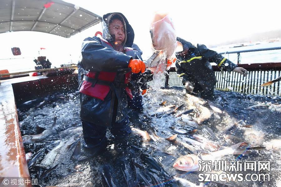 2018年12月26日,吉林松原,查干湖迎來(lái)了“紅網(wǎng)”,單網(wǎng)捕撈約30萬(wàn)斤。