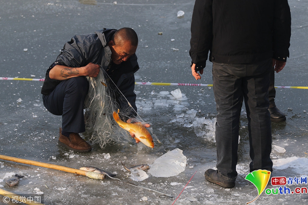 安徽阜陽(yáng):八里河冬捕魚“頭魚”拍出88萬(wàn)元