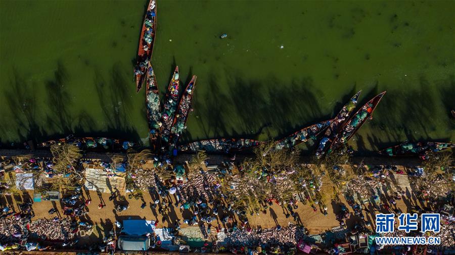 星云湖畔的老河咀魚市熱鬧非凡(12月25日無(wú)人機(jī)拍攝)。新華社記者胡超攝