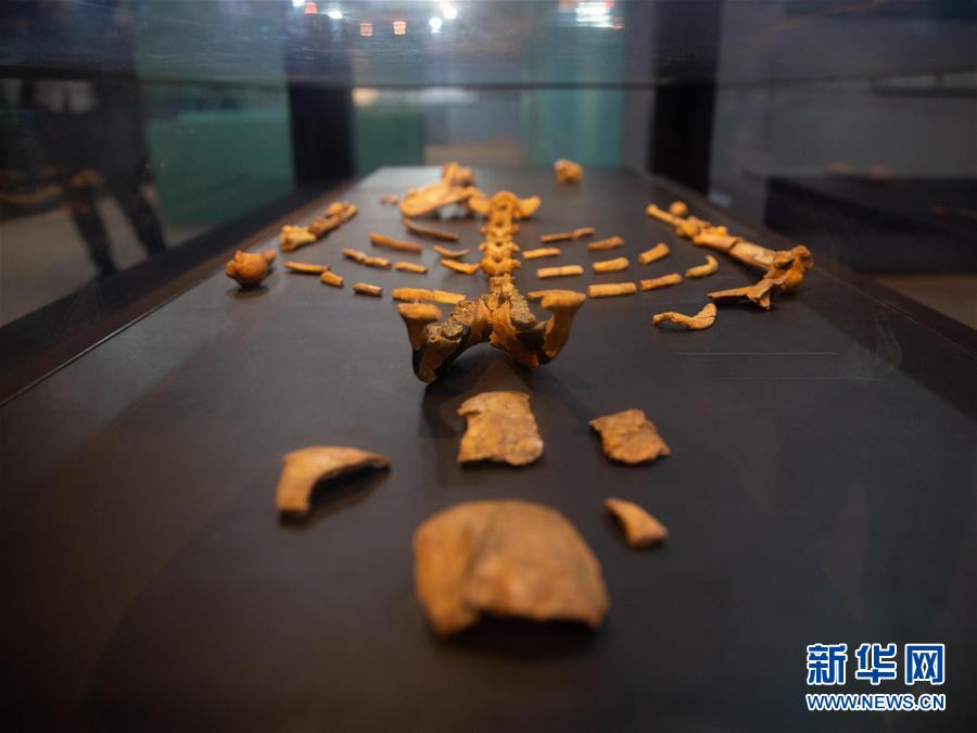 非洲有著悠久的歷史和燦爛的文化。走進非洲的博物館,探尋人類文明的起源和發(fā)展步伐。 埃塞俄比亞國家博物館位于首都亞的斯亞貝巴,以收藏有“人類祖母”之稱的古人類化石露西聞名。1974年,考古學(xué)家在埃塞俄比亞一處谷地發(fā)現(xiàn)了屬于一個古人類女性的大量骨骼化石,化石占完整骨骼的40%,研究人員用一首甲殼蟲樂隊的歌將其命名為露西。 這是2019年5月17日在埃塞俄比亞首都亞的斯亞貝巴的埃塞俄比亞國家博物館拍攝的露西化石展品。 新華社記者 呂帥 攝