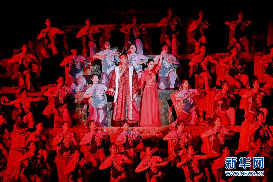 12月30日,演員在武夷山表演《印象大紅袍》。當(dāng)日,福建武夷山“印象大紅袍十周年公益晚會(huì)”在風(fēng)光秀麗的大王峰下舉行?!队∠蟠蠹t袍》《印象劉三姐》《印象麗江》《又見平遙》《印象武隆》《印象西湖》六部“印象家族”作品同臺(tái)亮相。這場(chǎng)公益晚會(huì)票房收入將全部捐獻(xiàn)給南平市紅十字會(huì),用于資助閩北山區(qū)貧困家庭。 新華社記者 張國俊 攝