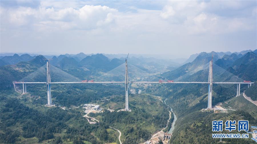 這是9月25日無人機(jī)拍攝的平塘特大橋。新華社記者陶亮攝