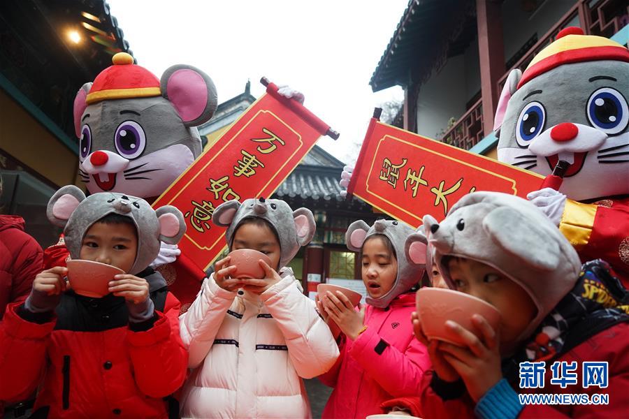 1月2日,小朋友在南京玄奘寺的贈粥送祝?;顒蝇F(xiàn)場。 當(dāng)日是農(nóng)歷臘月初八,中國傳統(tǒng)臘八節(jié)。 新華社記者 季春鵬 攝