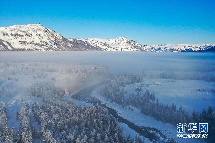 這是1月3日拍攝的晨霧下的喀納斯河(無人機照片)。新華社記者宋彥樺攝