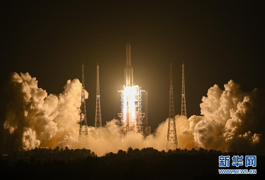 2019年12月27日20時(shí)45分,長征五號(hào)遙三運(yùn)載火箭在中國文昌航天發(fā)射場點(diǎn)火升空。 新華社記者陳曄華攝