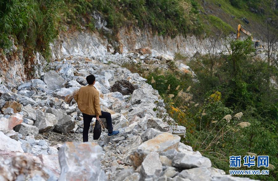 八好村駐村第一書記韋德王徒步前往群眾家中,開展扶貧工作(2019年12月16日攝)。新華社記者黃孝邦攝