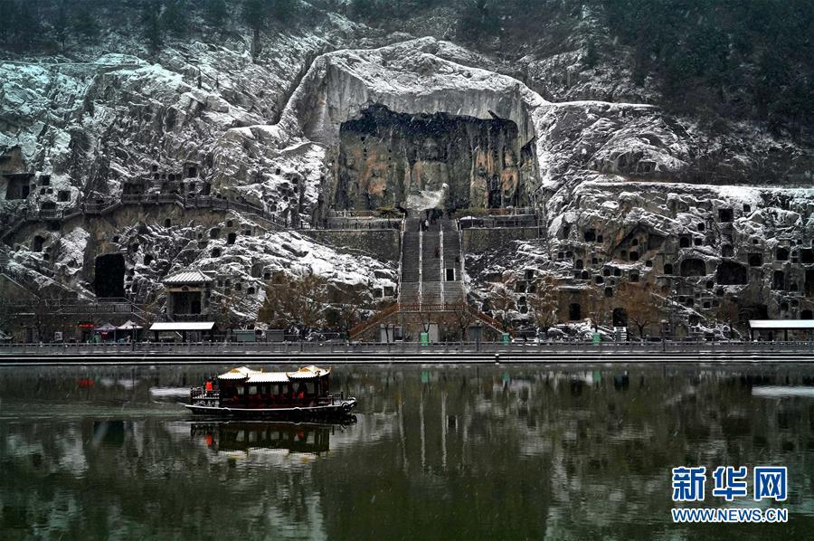 當(dāng)日,雪后的河南洛陽(yáng)龍門石窟景區(qū)銀裝素裹,一幅天然的水墨畫卷徐徐展開(kāi)。