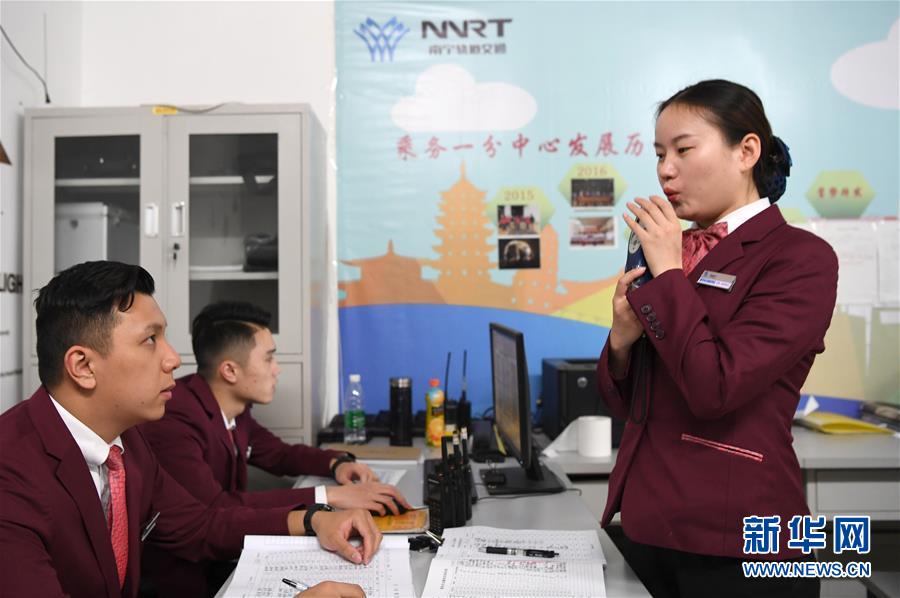 今年24歲的劉慧君是南寧軌道交通1號線上的一名列車司機(jī),也是南寧首批地鐵女司機(jī)隊伍中的一員。雖然年齡不大,她工作至今駕駛里程已超過8萬公里。由于工作的原因,當(dāng)許多人還在熟睡當(dāng)中,劉慧君已進(jìn)入緊張的工作狀態(tài)。填寫司機(jī)日志,進(jìn)行酒精測試,領(lǐng)取行車物品……完成一系列準(zhǔn)備工作后,她走進(jìn)列車駕駛室開始新一輪班次的工作。