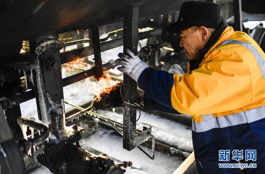 林海間的“送水小火車”調(diào)車員對“送水小火車”進(jìn)行出行前的檢查作業(yè)(1月17日攝)。新華社記者許暢攝