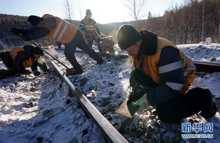 1月8日,西羅奇維修工隊工作人員在嫩林線497公里處進(jìn)行維修作業(yè)。新華社記者王毓國攝