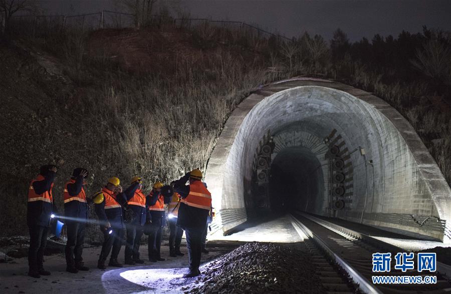通化通信車間無線工區(qū)鐵路通信工人步行前往隧道內(nèi)作業(yè)地點(diǎn)(1月10日攝)。2020年春運(yùn)1月10日拉開帷幕。無數(shù)旅客平安出行的背后,是無數(shù)基層鐵路工人的付出和堅守,中國鐵路沈陽局集團(tuán)有限公司吉林電務(wù)段通化通信車間無線工區(qū)的鐵路通信工人便是其中之一。他們在長白山區(qū)飲風(fēng)踏雪,為保障轄區(qū)隧道內(nèi)鐵路通信信號傳輸全天候暢通而日夜奔行。新華社記者許暢攝