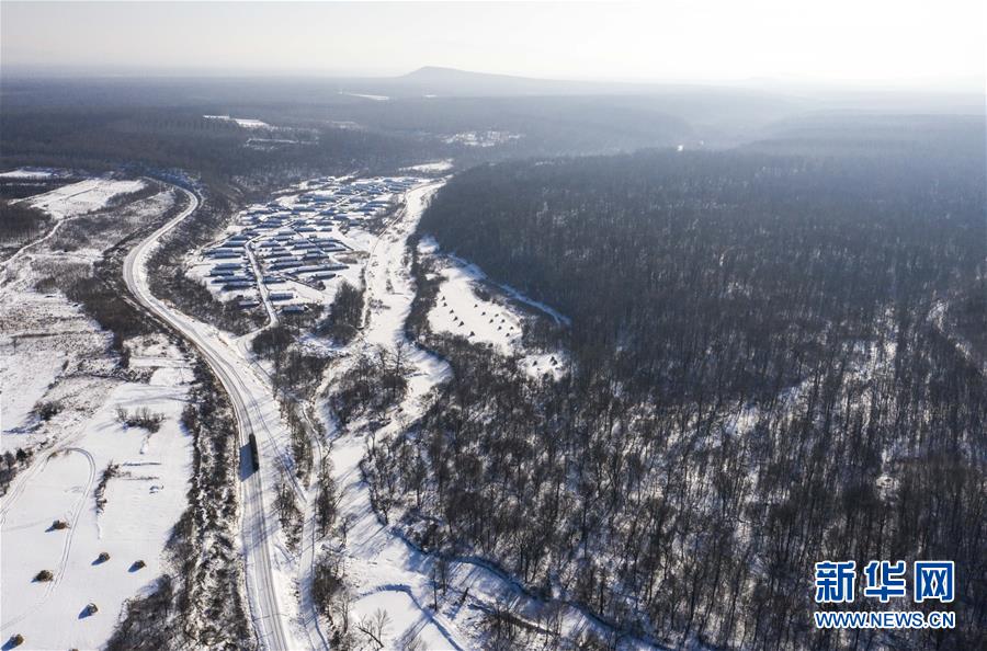 “送水小火車”行駛在林海間,前往送水地點(diǎn)(1月17日攝,無人機(jī)照片)。新華社記者許暢攝