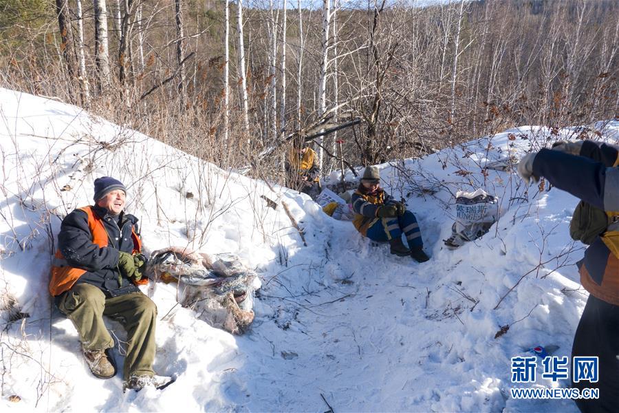 1月8日,西羅奇維修工隊工作人員在作業(yè)現(xiàn)場坐在雪地上臨時休息。新華社記者才揚(yáng)攝