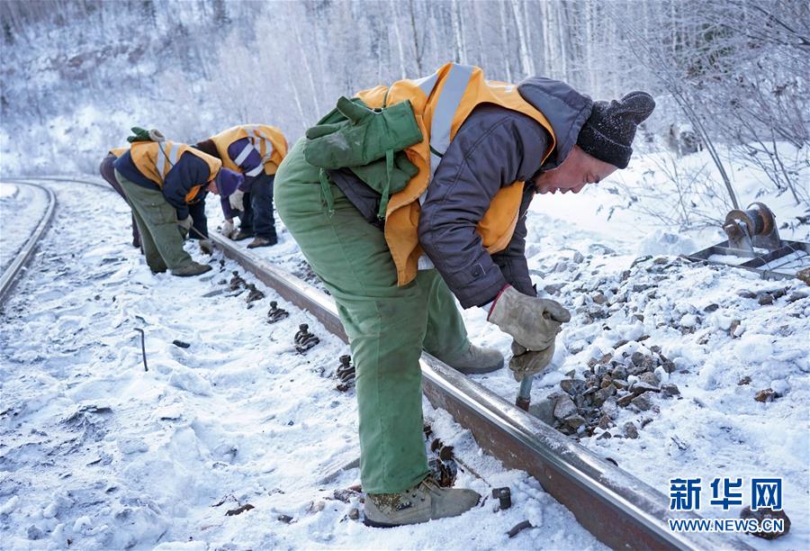 1月7日,西羅奇維修工隊工作人員在加格達奇工務(wù)段西羅奇嶺二號隧道附近進行維修作業(yè)。新華社記者才揚攝