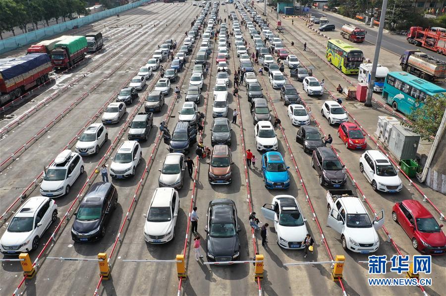 1月19日,車輛在??谛阌⒏圯喍纱a頭等待登船(無(wú)人機(jī)照片)。 當(dāng)日是春運(yùn)第10天,瓊州海峽進(jìn)入春運(yùn)進(jìn)出港高峰。據(jù)海南港航控股有限公司數(shù)據(jù),截至18日,??谑袃筛劭诖哼\(yùn)累計(jì)進(jìn)出港旅客54.89萬(wàn)人次,進(jìn)出港車輛13.32萬(wàn)輛次。18日單日進(jìn)出港旅客9.75萬(wàn)人次,同比增長(zhǎng)43.9%,進(jìn)出港車輛2.3萬(wàn)輛車次,同比增長(zhǎng)45.5%。 新華社記者 郭程 攝