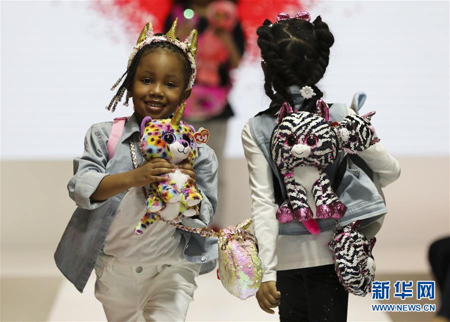 2月22日,兒童模特在美國紐約舉行的2020紐約國際玩具展上展示新款毛絨玩具。新華社記者王迎攝
