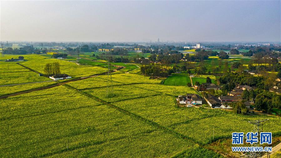 2月25日在四川省崇州市農(nóng)業(yè)產(chǎn)業(yè)功能區(qū)拍攝的油菜花田(無(wú)人機(jī)照片)。 初春時(shí)節(jié),正值農(nóng)時(shí)。成都平原西部的大邑、崇州等縣市油菜長(zhǎng)勢(shì)良好,一片生機(jī)盎然的景象。  新華社記者 王曦 攝