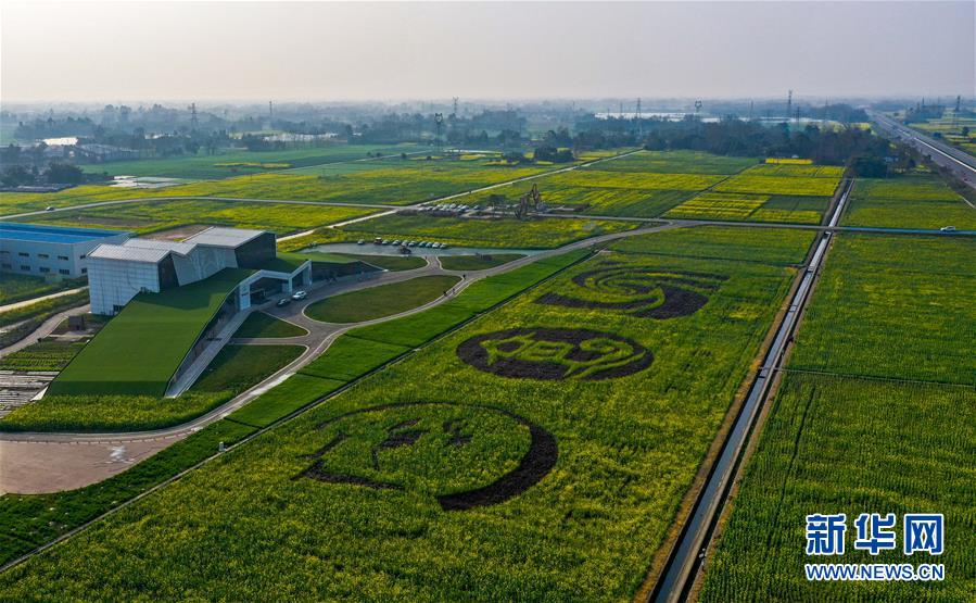 2月24日在四川省大邑縣安仁鎮(zhèn)永興村拍攝的油菜花田(無人機(jī)照片)。新華社記者王曦?cái)z