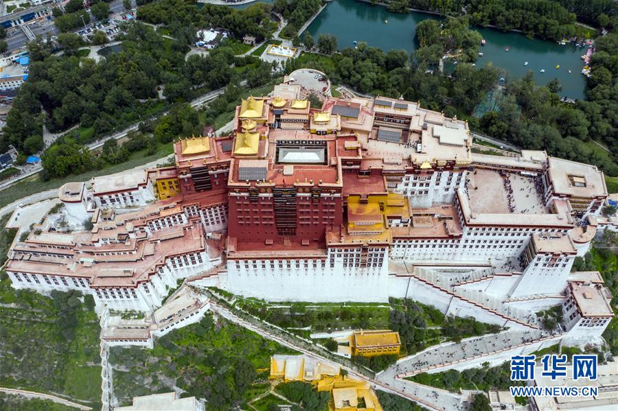 8月10日無(wú)人機(jī)拍攝的布達(dá)拉宮。新華社記者李鑫攝
