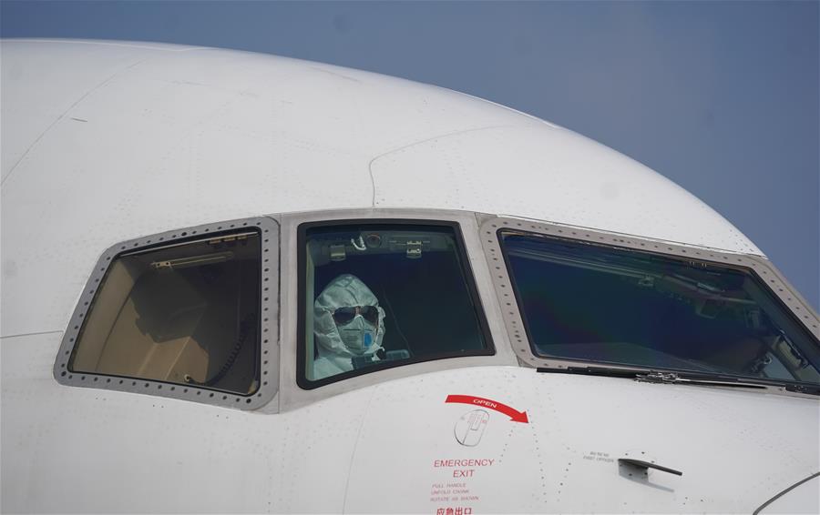 1月28日,飛行員駕駛滿載援助物資的飛機(jī)抵達(dá)武漢天河機(jī)場(chǎng)。新華社記者 程敏 攝
