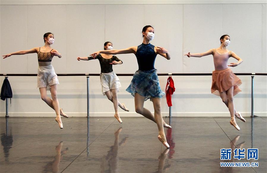 2月29日,在通過網(wǎng)絡(luò)直播的“公益公開課”上,上海芭蕾舞團(tuán)團(tuán)長(zhǎng)辛麗麗(前右)在指導(dǎo)團(tuán)員。新華社記者任瓏攝