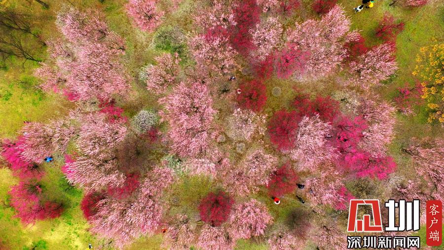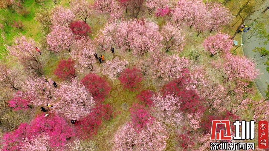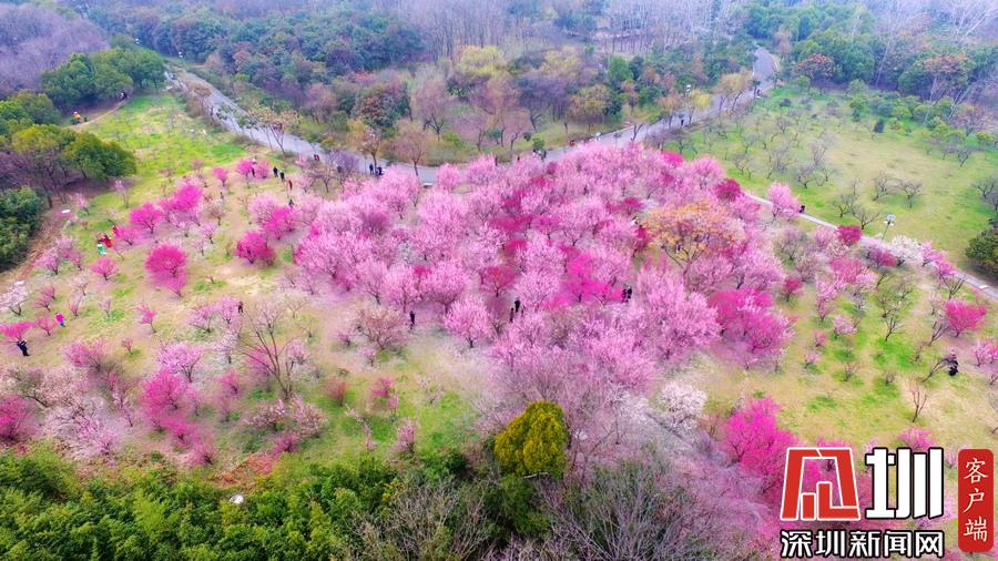2020年2月26日,春暖花開,春意盎然,江蘇省揚(yáng)州市蜀岡西峰生態(tài)公園內(nèi)梅花競(jìng)相綻放,五顏六色的梅花樹為古城大地披上七彩春裝,美不勝收,吸引了市民和游客前來踏春賞景。