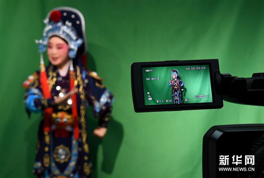 3月3日,李金玲在鄭州文化館通過直播的形式進行帶妝表演豫劇《花木蘭》選段。李金玲是鄭州工程技術(shù)學院音樂舞蹈學院的教授,也是豫劇常派弟子。14歲開始學習豫劇的她師從豫劇大師常香玉的次女陳小香。多年來,除了本職工作教學外,她還作為文化志愿者,到各地義務(wù)表演、授課,致力于豫劇的傳承與發(fā)展。疫情防控期間,鄭州文化館展開線上文藝戰(zhàn)“疫”,開通網(wǎng)絡(luò)直播平臺,李金玲也作為志愿者走進“直播間”,進行帶妝表演和教學,精彩的“云”上表演吸引了不少戲迷的關(guān)注?!霸谶@個特殊時期,通過直播的形式為大家表演,希望可以讓更多的人喜歡和了解豫劇,感受它獨特的魅力?!崩罱鹆嵴f。新華社記者 李安 攝