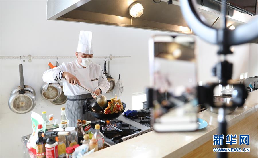 3月4日,職教城內(nèi)的鞍山市現(xiàn)代服務(wù)學(xué)校的李崇老師為學(xué)生進行遼菜烹飪實訓(xùn)網(wǎng)絡(luò)授課。遼寧省鞍山市職教城內(nèi)的各類職業(yè)教育學(xué)校從3月2日恢復(fù)網(wǎng)絡(luò)授課以來,教師們設(shè)置了豐富多彩的課程,提高1萬余名學(xué)生線上學(xué)習(xí)的積極性。新華社記者 姚劍鋒攝