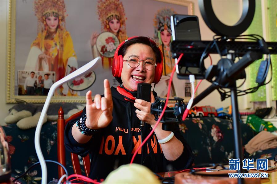 王春梅在直播中演唱晉劇片段(3月5日攝)。 新華社記者 曹陽(yáng) 攝
