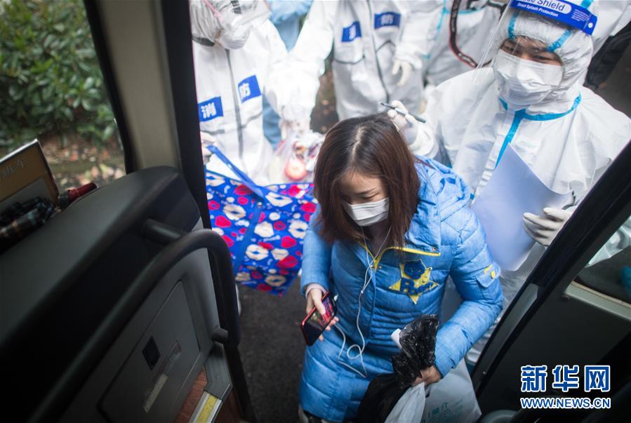 3月12日,黎婧(前)在志愿者的陪護下登上大巴。 3月12日,插畫師黎婧和84位病友離開自己居住的武漢軟件工程職業(yè)學(xué)院康復(fù)驛站,回到自己家中。他們都是治愈出院的新冠病毒肺炎患者,已經(jīng)在武漢軟件工程職業(yè)學(xué)院康復(fù)驛站進(jìn)行了14天醫(yī)學(xué)觀察,達(dá)到醫(yī)學(xué)標(biāo)準(zhǔn),成功解除隔離。他們由專車運送至所屬社區(qū)附近的集散點后,在社區(qū)工作人員的陪同下回家。 新華社記者 肖藝九 攝