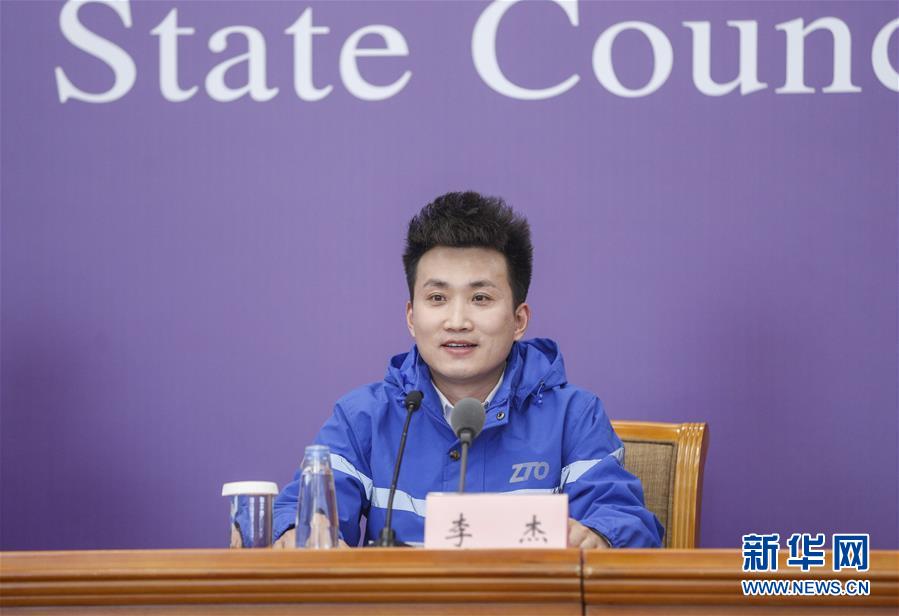 3月9日,中通快遞北京廠洼路網(wǎng)點(diǎn)快遞員李杰在北京出席國務(wù)院聯(lián)防聯(lián)控機(jī)制新聞發(fā)布會。