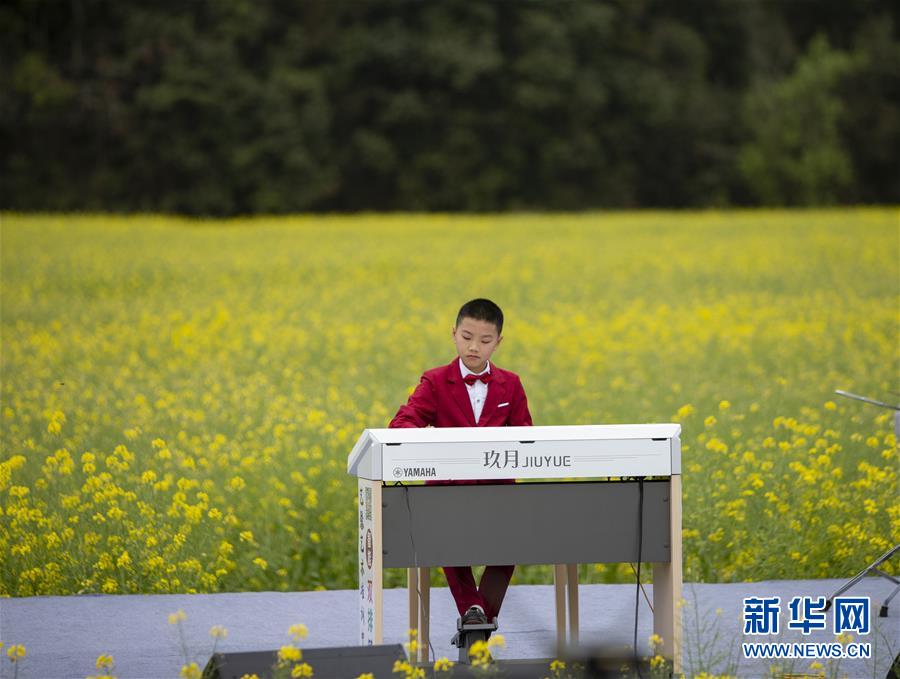 3月16日,一名小演員在李坑村的“花田音樂會(huì)”上演奏。 當(dāng)日,一場別開生面的“花田音樂會(huì)”在江西省婺源縣秋口鎮(zhèn)李坑村的油菜花海中舉行,帶給游人新鮮的視聽感受。 新華社記者 張浩波 攝