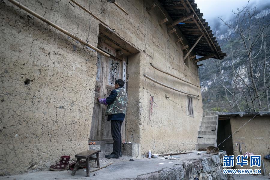 云南省永善縣大興鎮(zhèn)駱丘村村民晏付高關(guān)上老屋的大門準備離開(3月14日攝)。 新華社記者 江文耀 攝